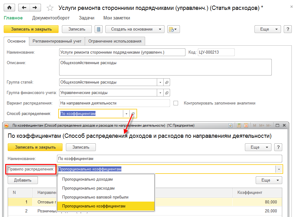 Статьи расходов с распределением На направления деятельности обеспечивают принятие к учёту общехозяйственных затрат, экономическое или финансовое содержание которых определяется способом распределения доходов и расходов по направлениям деятельности.