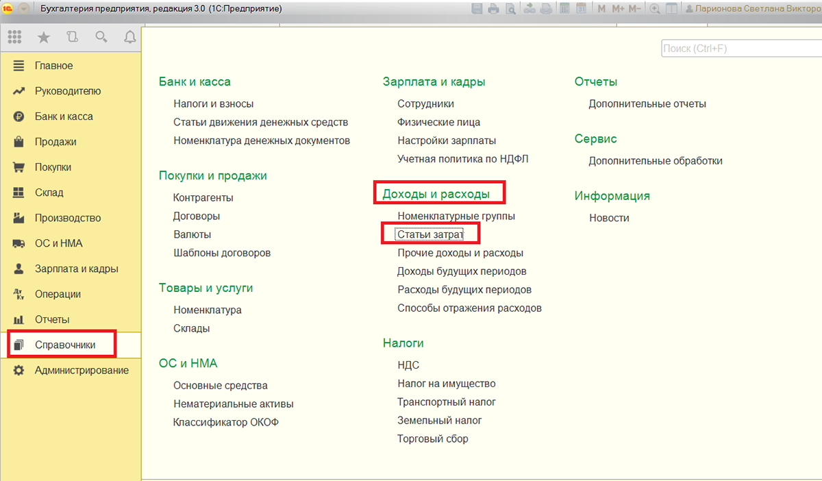 Рассмотрим, каким образом осуществляется настройка статей затрат в 1С